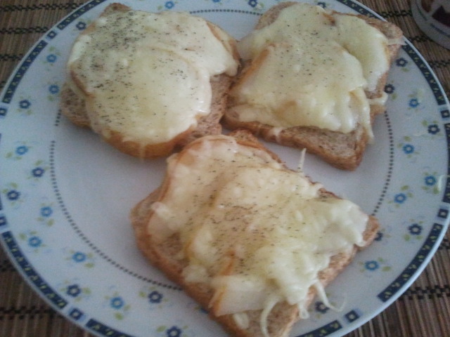 A toast kenyér egyik oldalát előpirítom (én a mikroban a grill programon 3 percig szoktam bennhagyni). Amikor kész, a másik oldalára vékonyra vágott körteszeleteket teszek, hogy fedje be a kenyeret teljesen. Trappista sajtot reszelek rá jó nagy halommal, hogy se a kenyér, se a körte ne látszódjon ki alóla. Vissza a sütőbe és pár perc alatt már készen is van. Akkor jó, ha teljesen elolvadt a sajt. A végén sózom és borsozom.