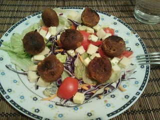 A kisült golyócskákat ezen a salátaágyon kínáltam.