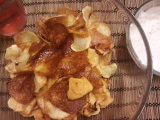 Ma kedvem támadt valamit nassolni. Mivel hétvégéről maradt itthon egy petrezselyemgyökér, pár szem csicsóka és krumpli, ezért kitaláltam, hogy házi chipset fogok készíteni zöldfűszeres mártogatóssal.